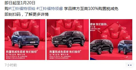 我就说最近4S店怎么跟我联系这么频繁,还老跟我说想买车的话要抓紧了,购置税补贴不剩多久了,我心想不是截止到12月31日就没了吗?然后看了销售朋友圈,日期又变了,截止到1月20日,我搜了一下这好像不是国补,而是江铃福特科技品牌方给到的补贴,领睿还是可以享受50%的补贴,买领裕的就划算了,100%补贴,这个搞法是有点让人心动哦,这个周末就看车去,哈哈哈哈~