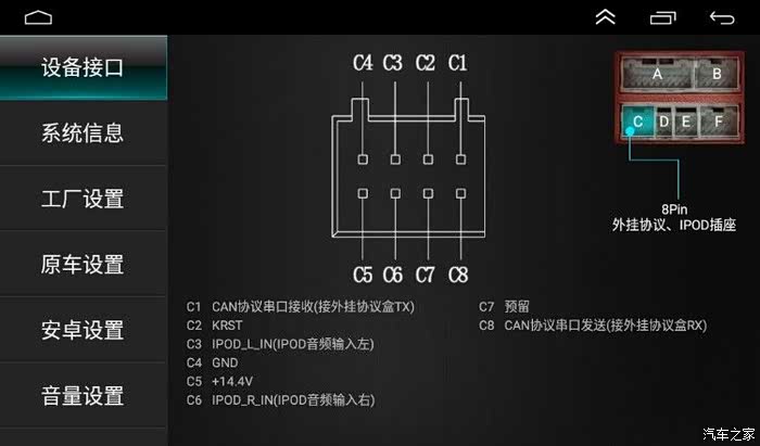 6、根据卖家的配置,我猜测307改大屏有几种情况:10年后的低配用标致专用大头,高配用协议盒;10之前的低配用大众线束(小头),高配用协议盒。买协议盒的也是分了大小头,小头是需要单独接CAN线的。