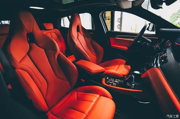 运动式座椅,视觉效果上当然是更有冲击力了,看着就有一种“撒野”的冲动,不过好看归好看,乘坐起来的体验么……怎么说呢,也不是说不舒服,毕竟靠背和腿部、腰部的支撑都已经到位了,只是头枕不可以调节的话,个人还是不太习惯,毕竟每一个人身高体型都不一样。像我女友坐在上面的时候,头就刚好靠在椅背的那个方形镂空上。