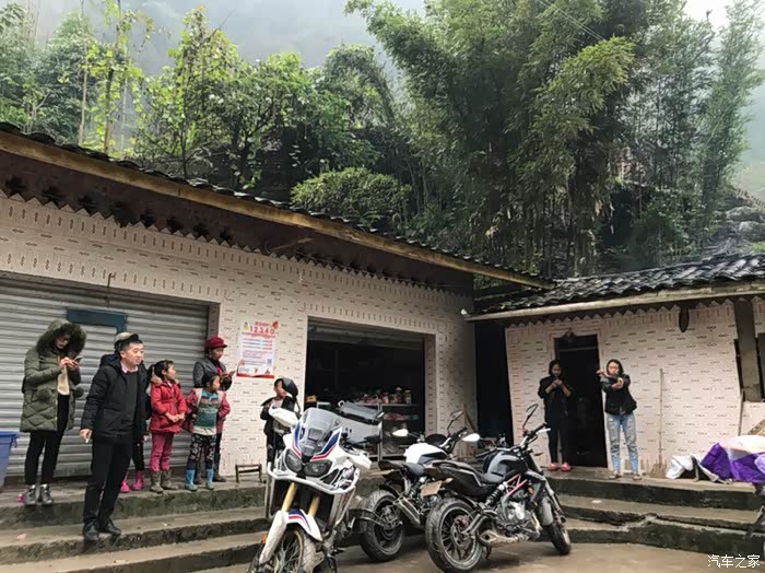 有惊无险,三台拉物资的汽车和我们八台摩托车顺利的到达了县城酒店,70元一晚上的酒店不算贵。都九点了,大家个个饿得肚子都咕咕叫啦