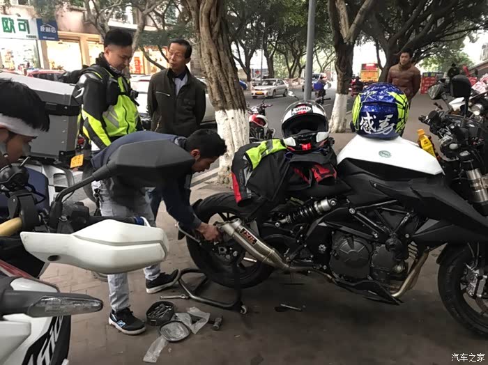 车队到了乐山,骑黄巡的后刹车片磨光了,另一个黄龙后胎被扎,两个黄龙集体休整。