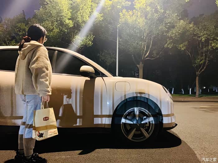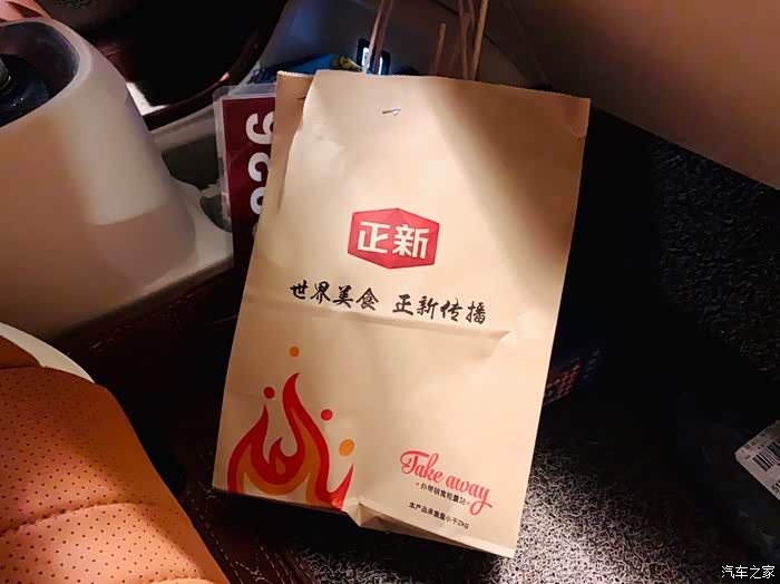 庆幸只等了10分钟,餐已送达,准备上车,开启夜宵模式。
