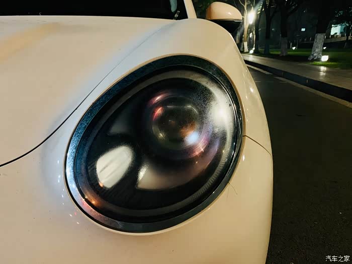 大灯上也沾满了水汽,雾蒙蒙的状态,看似是好猫的眼睛模糊了一般,虽不影响正常驾驶,但也挺有意思。