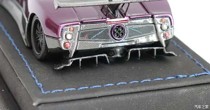 尾灯设计与头灯呼应,三联竖直排列,很容易让人记住造型,排气的尾部装饰也采用了与车身同色的紫色,一台车算上搭配颜色不能超过3种,不然会显得很乱,没有主次之分,帕加尼的颜色搭配就遵循了这一点,所以它的搭配是我十分喜欢的。