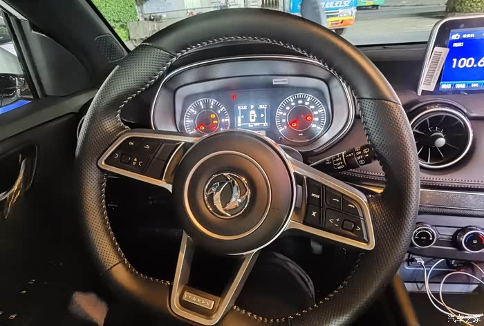 D型小巧方向盘,皮质包裹,手感不错。