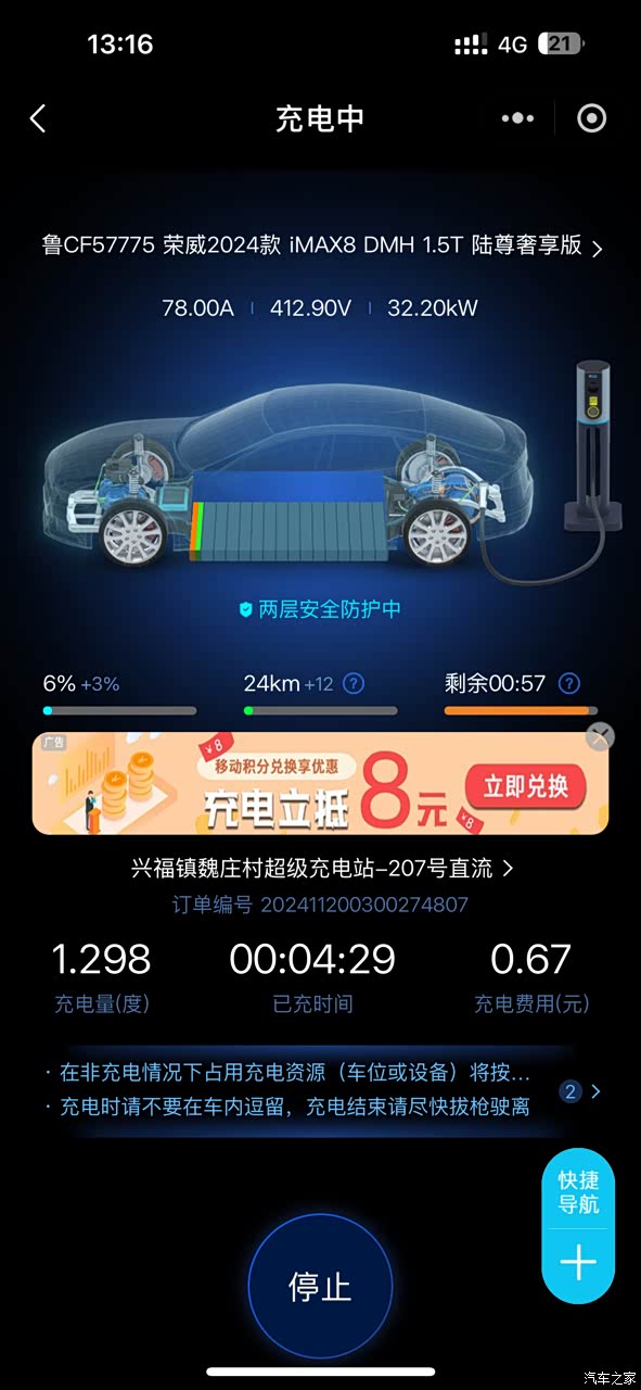 第一次充电。。。充着电,躺后排舒舒服服听着歌睡个午觉,醒来电就满了。。。嗯才花了11块钱。。。和那500块钱油比起来,四舍五入约等于不要钱。。。。