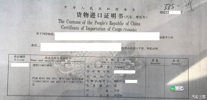 网上选号几个问题:一致性证书写的车辆型号是:MINI ONE XN71 ------------------------------------------------------------ 一. 车辆型号:选择 1198CC ,还是选择 WMWXN710(我车架号头8位确实是这个)-------------------------------------------------------------------- 二. 货物进口证明字号: 需要输入前面的字母 H 吗? 例如:H0217******7 --------