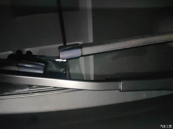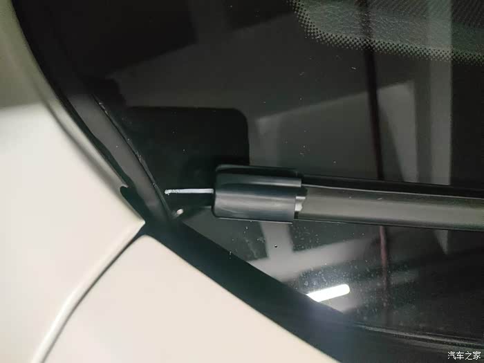 今天洗完车后偶然间发现雨刷前段有两条这样的白线,像是油漆笔画的,擦不掉,不知道什么情况
