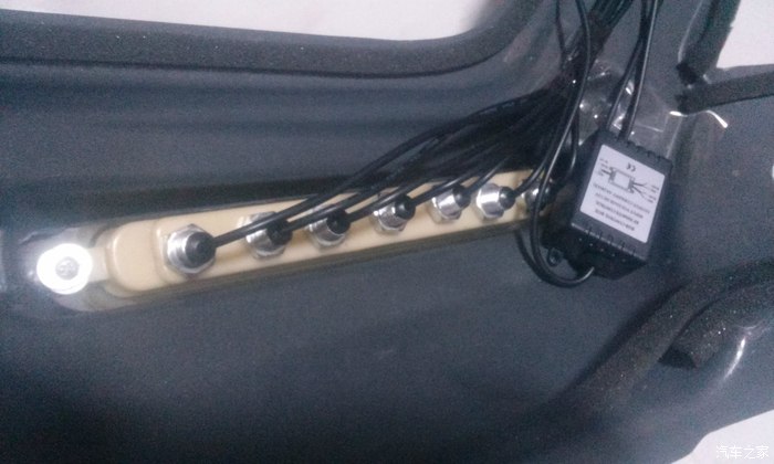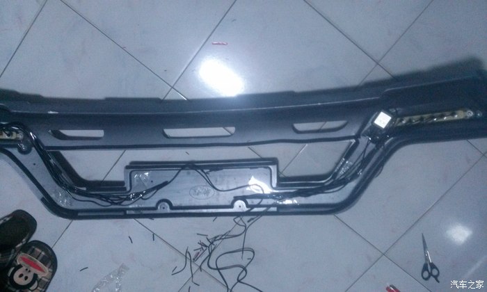 这是自己买的LED灯珠,用买灯珠送的钻头,钻好眼,一个一个灯珠排列好,拧好,右边的是控制盒顺便藏在保险杠里面了