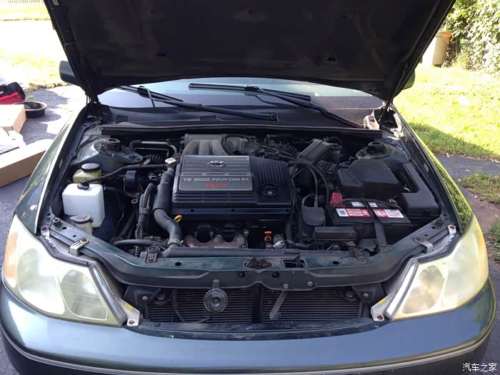 今天本帖的示例给大家带来的是一辆2003年的丰田Avalon,这车子国内没官方没有引进,不过有些少量的进口,在美国丰田对Avalon的定位是比凯美瑞高一点,在北美市场类似于皇冠的地位,就是挂丰田标的最大的轿车。但是由于是前驱车型,所以更贴近于凯美瑞而不是皇冠。车子是前驱的,采用的是VVT-i 3.0L V6发动机,在2003年来说性能也还是不错的。这辆车是我一朋友的,去年买来到现在,质量还比较稳定,上一任车主的全车油水也都换过了,没有什么故障。不过上一周,他的车子散热器漏水。去这边修理店,连工带料要价400多美元,丰田dealer得要800。而散热器这零件我们网上查到的才要40多美元,我们显然不能当这冤大头啊。果断叫他网上下单我们DIY。 最后连带买了新散热器,还有新管子和管箍一共70多美元。这个周六,东西到期了,我也有时间,和朋友一起动手把新的散热器换上。