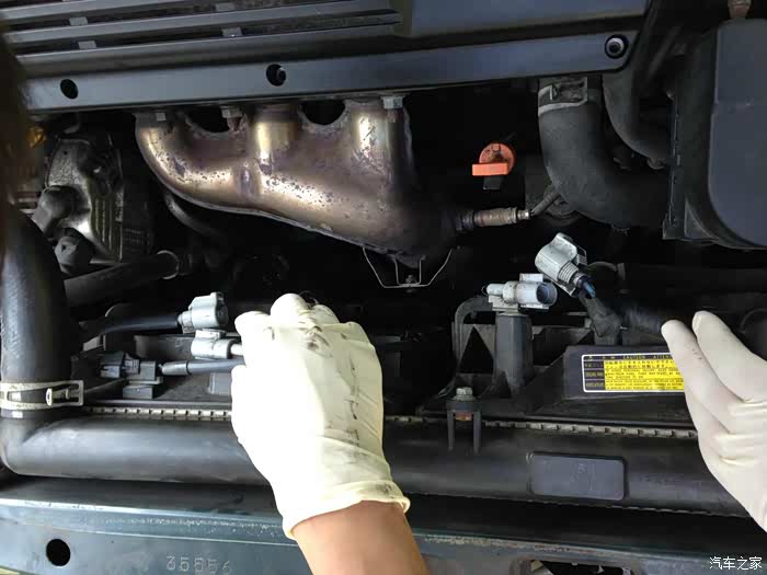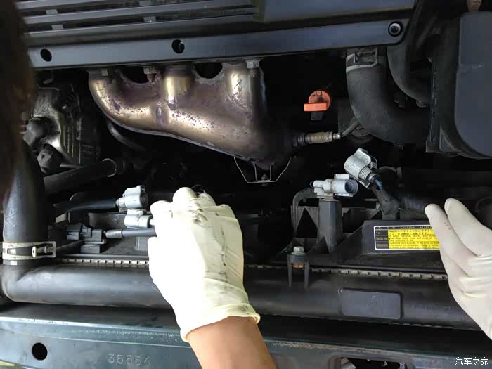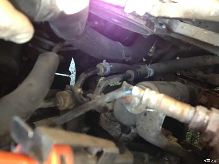 下面有两根自动变速箱油散热管,也要拔掉。