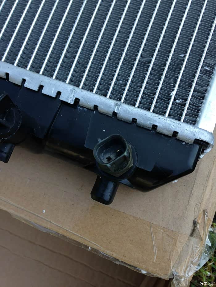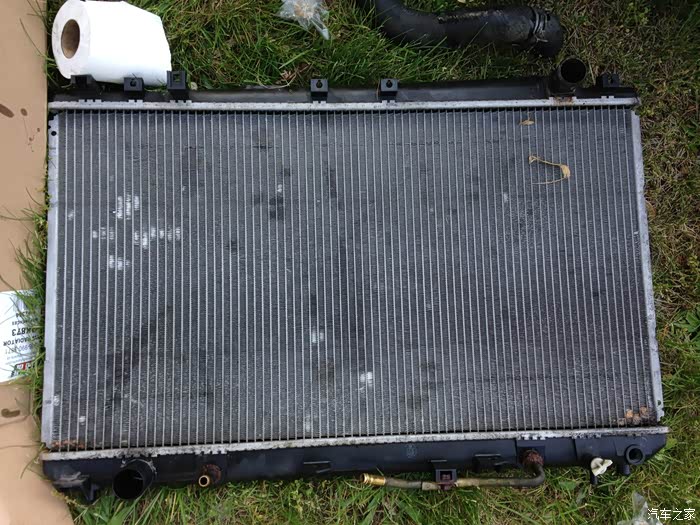 旧散热器。要断开的地方有几个插头,上下两根粗散热管,还有两根自动变速箱油冷却管。