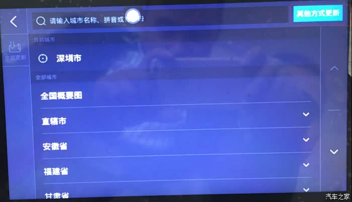 在车机上选择更新方式