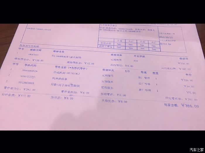 所有的清单,除了预存的机油,实际支付150,工时加机滤的费用,小保养一次,完成。