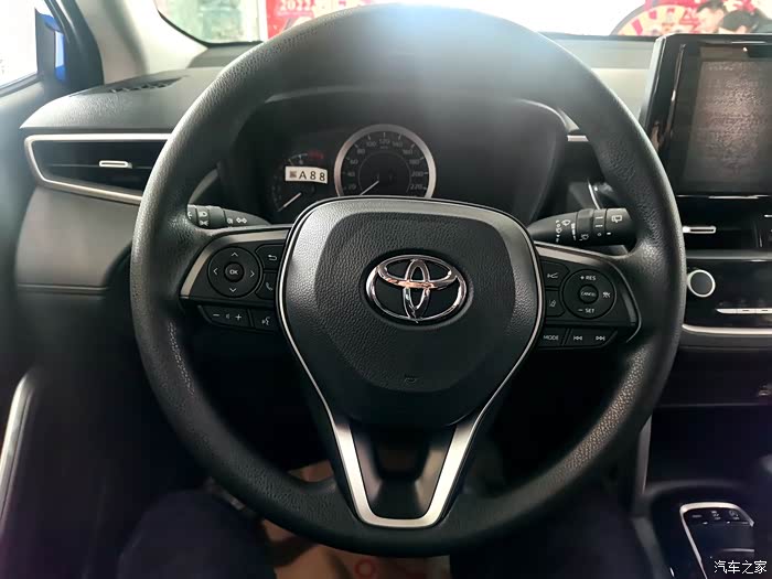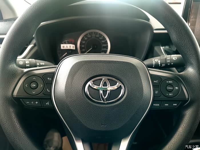 眼下流行下部扁平的方向盘,而丰田依旧是中规中矩的三幅式多功能方向盘。