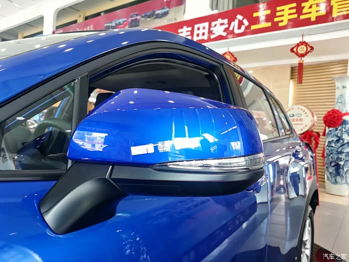 上蓝下黑的外后视镜,并自带辅助转向灯。