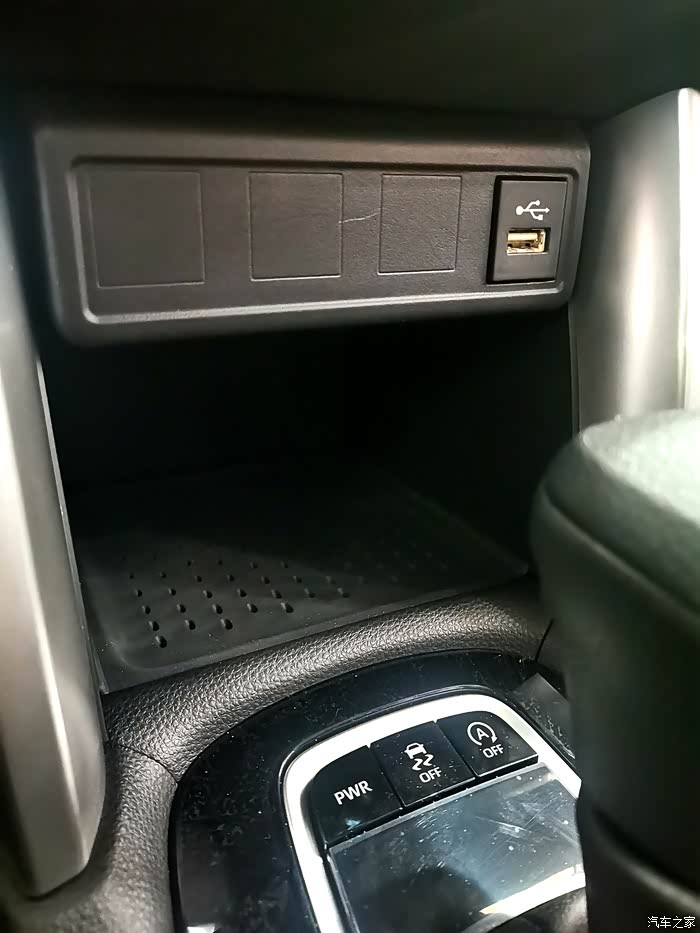 杯架后方,是扶手箱。相对而言,不算宽大。
