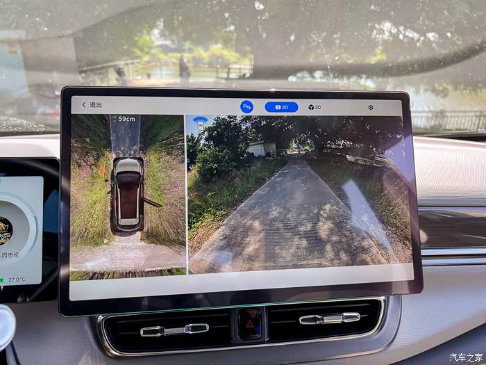 由于斜坡比较窄,幸好VP有全景影像,可以在车内观察外面情况,加上透明车底这个功能,看起来就更直观了。换其他车估计就不敢下去了。