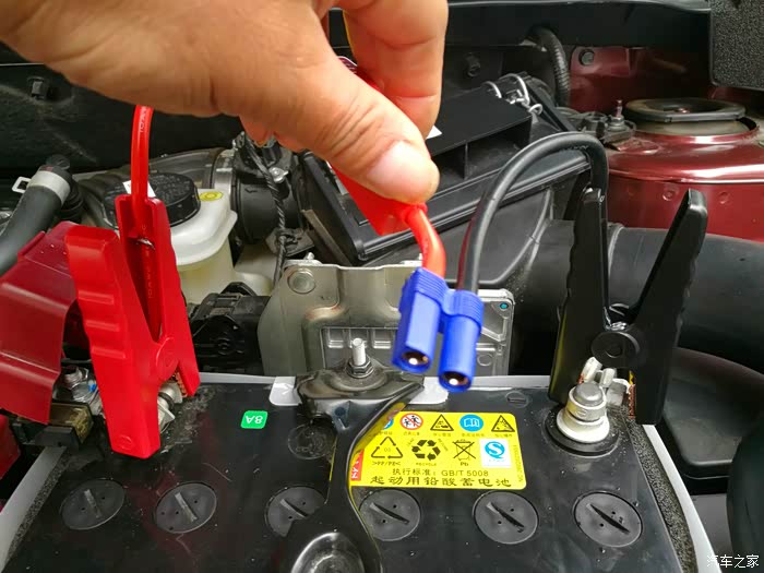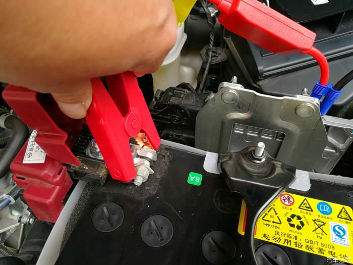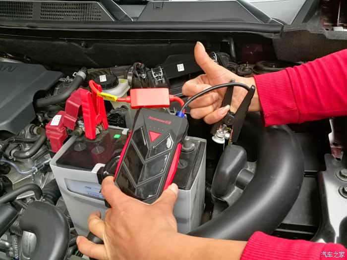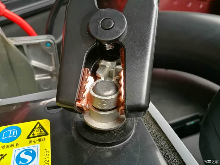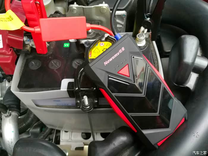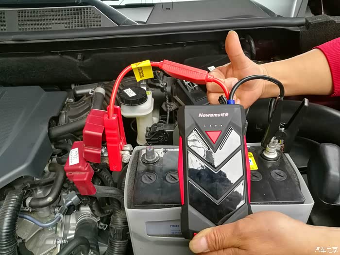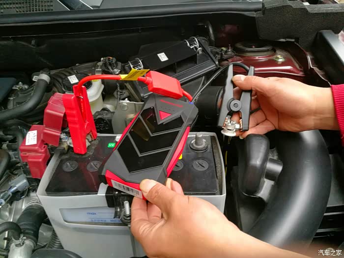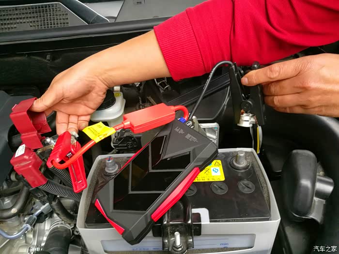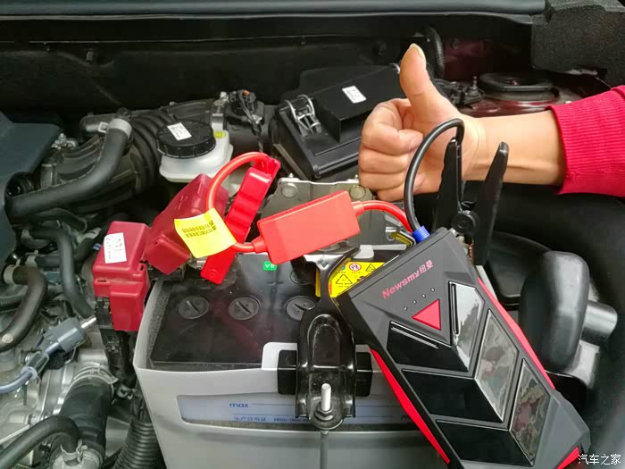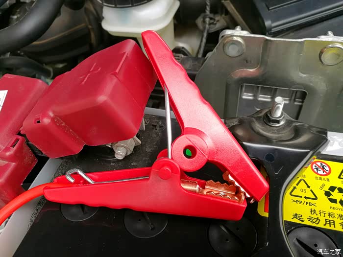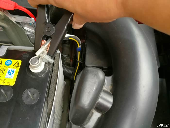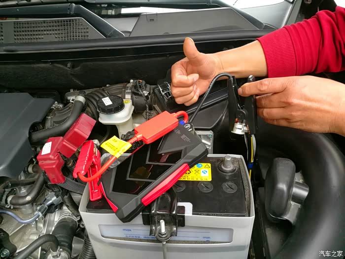 小心将汽车电源正极端脱离电瓶接线桩(一定要注意),将启动电源夹在车辆正极连线上,在好友的质疑中再次启动车辆,没问题,一切OK