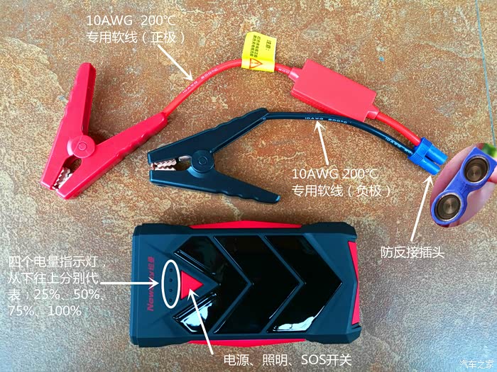 采用美标10AWG(相当于国标5mm^2)汽车启动专用全铜线束,长短各异,能有效避免“碰头”的危险,贴心的设计,赞一个