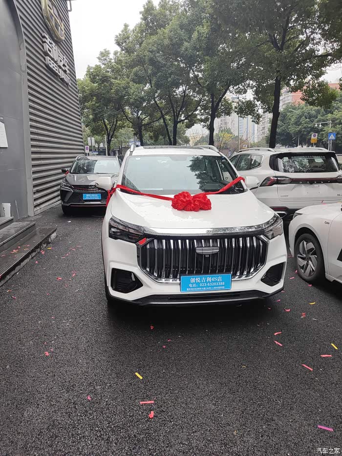 在网上看了车子外观、内饰、配置,就被豪越L的超高性价比吸引了,决定就它了豪越L自尊!过后就到四S店看车,由于才上市很多店都没现车,而且要吉利四S店L网才有得卖。后来通过朋友了解吉利创悦四S店才到了几台车后,马上打电话下定交了定金,第二天就来到四S店去看车,验车。办完手续,开车回家!!!