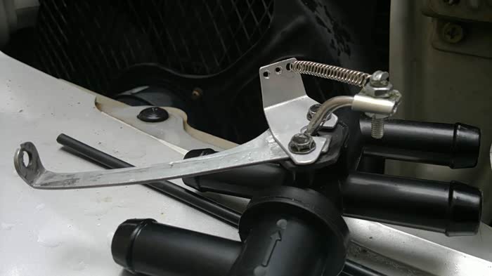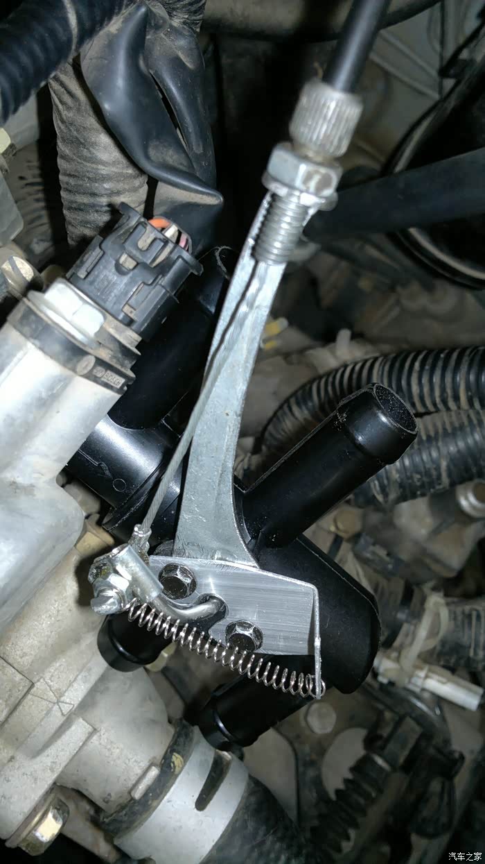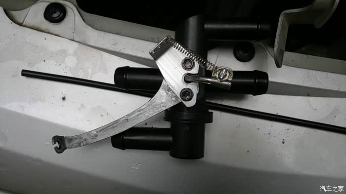 看到车友们都是直接在机舱里的暖风水管上装个四通阀,我就在想,能不能用一根拉索把它连接在冷热风转换旋钮上。