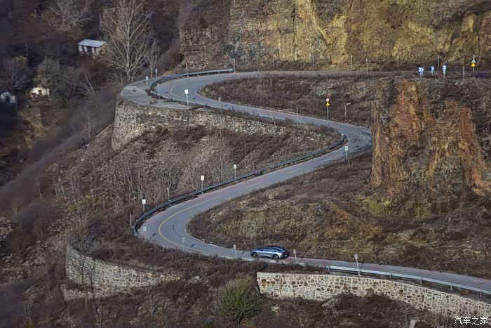 这次我们选择跑山的地点是虹井路,作为北京跑山爱好者的圣地,相信大家都已经比较熟悉它的路况。从照片不难看出,各种S弯,180°大回转等路况层出不穷。虹井路以蜿蜒曲折、起伏不定的山路著称,是检验车辆操控性和动力性能的绝佳舞台。这里不仅有连续的弯道挑战车辆的转向精准度和车身稳定性,还有长直线让车辆尽情释放加速性能,简直就是为阿尔法S5量身定制的试车场。