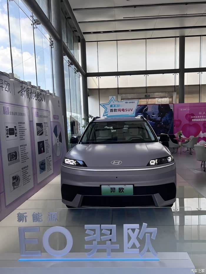 在逛了好几个4S店后,发现10到15万内纯电SUV可选项真不多,对象喜欢的价格超预算,预算范围内的对象又不喜欢,折中的又配置低。就在准备回家时,路过北京现代4S店,看到店里有辆紫色的车,直接吸引了我对象的目光。
