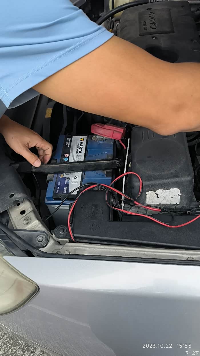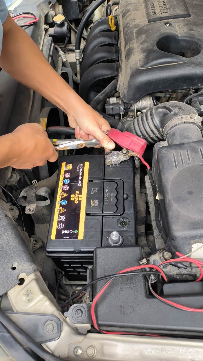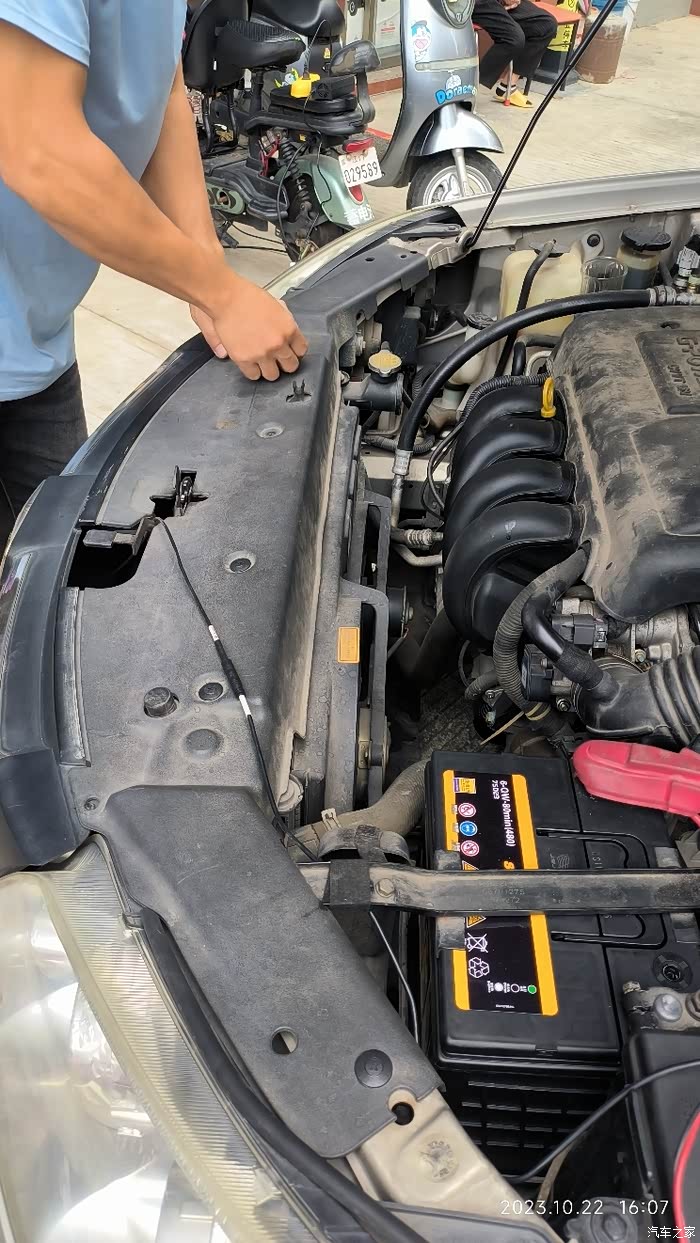 10.22冲点电用超级电容启动后开到谈好价的电池店换电池,一个电池接头锈蚀螺帽扭不出,老板帮换了电池接头,还顺便换了所有前板老化的塑料钉子。生意兴隆300块搞定电池型号75D23L。