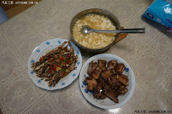 主菜:吴氏刁子鱼; 配菜:蒜蓉排骨; 汤:豆腐脑汤; 青菜:小炒空心菜(还未下锅,LP要等女儿回家再炒)