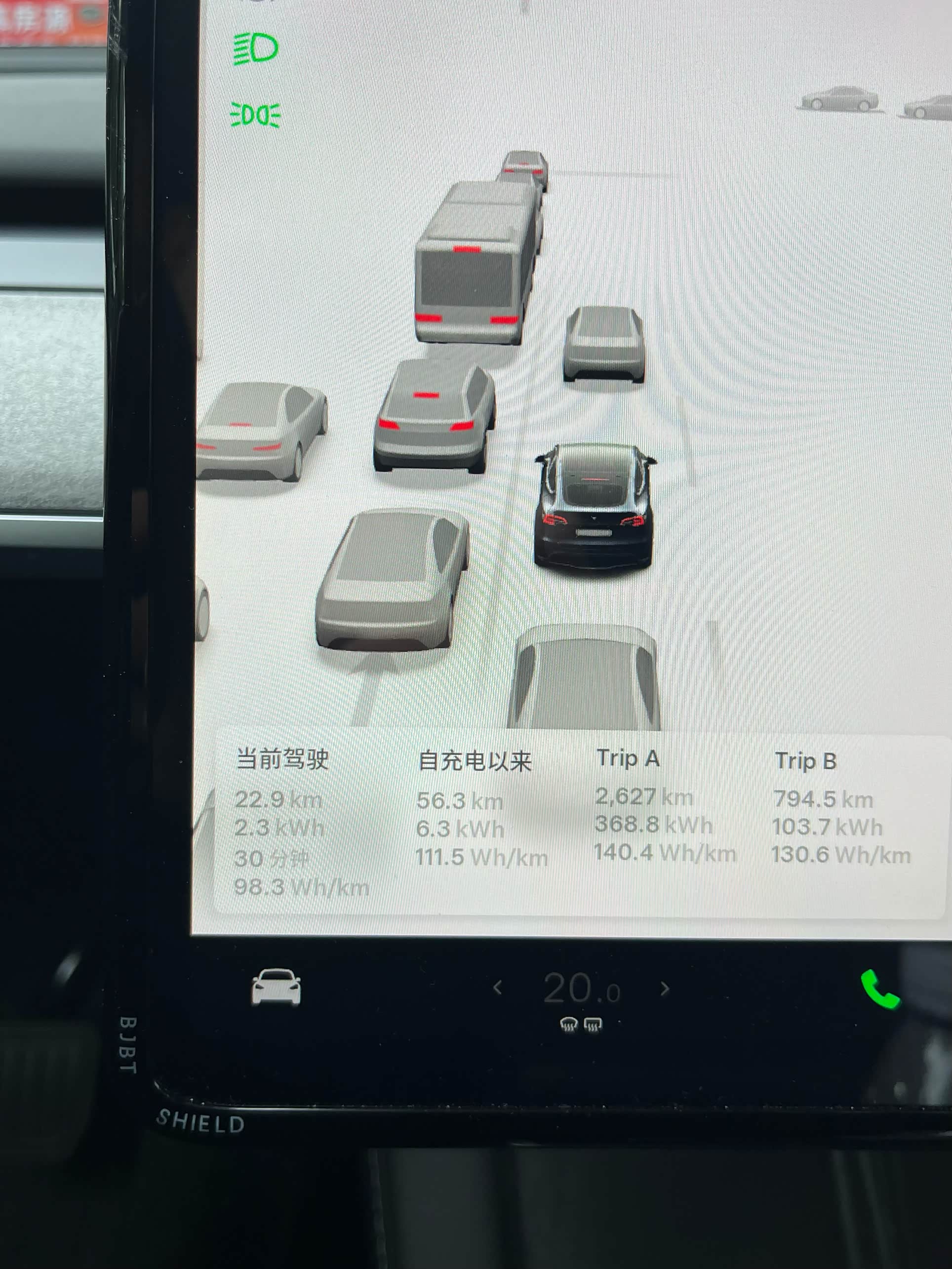 经常能反向虚标续航,虽然咱看不太懂这能耗单位。屏幕里的小车挺精致
