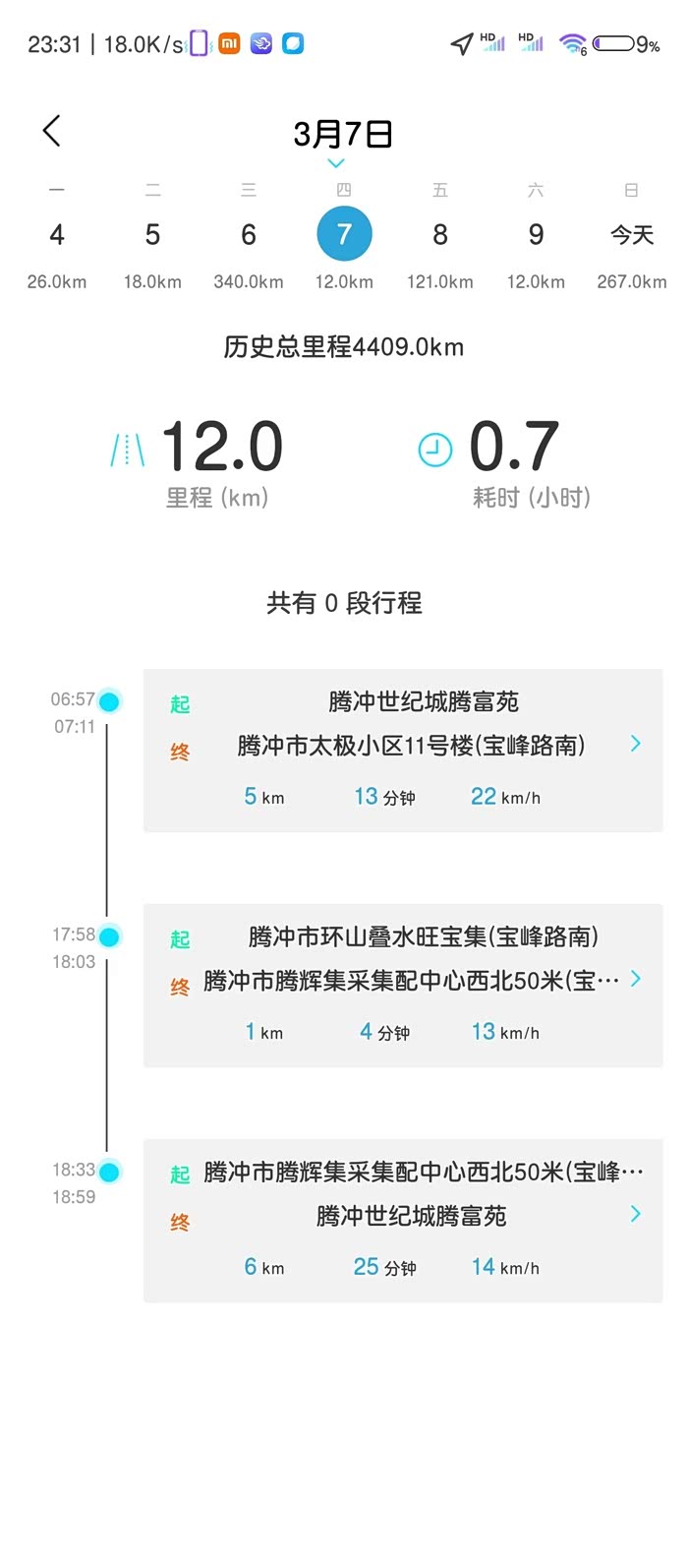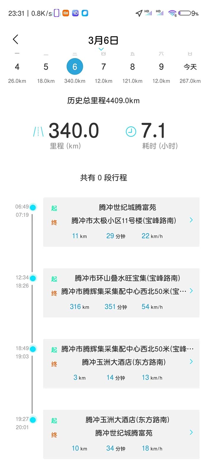 从3月6号出去跑了一趟滇缅路后,在3月7号和3月9号充了两次电,都是从20%充到100%,直到今天又出去溜达一趟回来统计一下,看下南方行车的能耗。