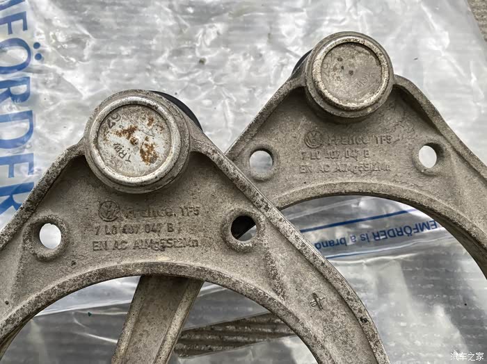 比如上支臂,橡胶球是完好的,紧致有弹性,但胶套坏了。某宝有胶套单独卖,才几十块,但我不想耗时间,也没有这样的动手能力。我换了一对新支臂。
