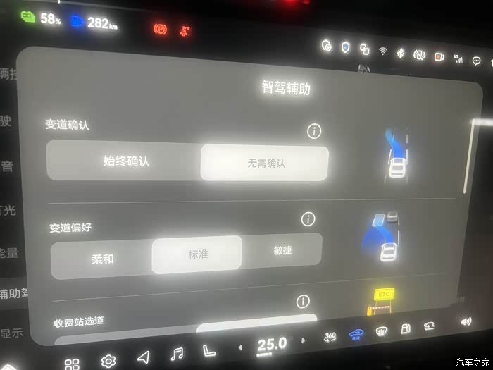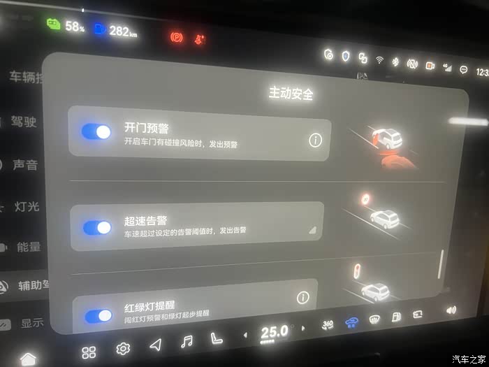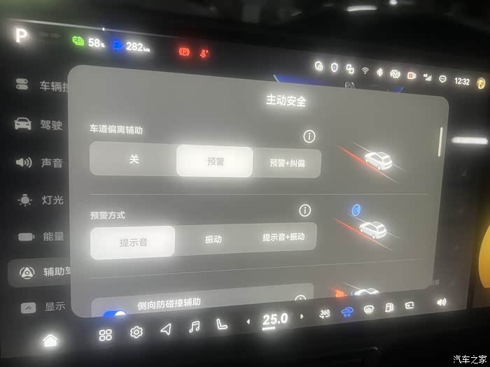 其中包含了 车道偏离负责:声音提示+主动纠偏,目前我把主动纠偏关了,否则的话车辆经常会自己动方向盘帮你开到车道中间。