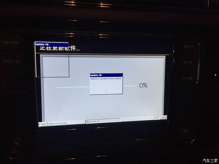5.这个过程中会弹出错误提示,不用管它,不要断电,等过个几十秒之后,一分钟也行,长按开机键直到屏幕出现大众的图标,就可以松开开机键了.