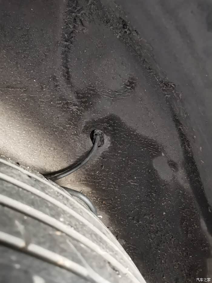 原因是线束上的固定卡扣(橡胶的)老化损坏断裂,导致线束垂落摩擦到轮胎内侧,时间长了把线磨断了