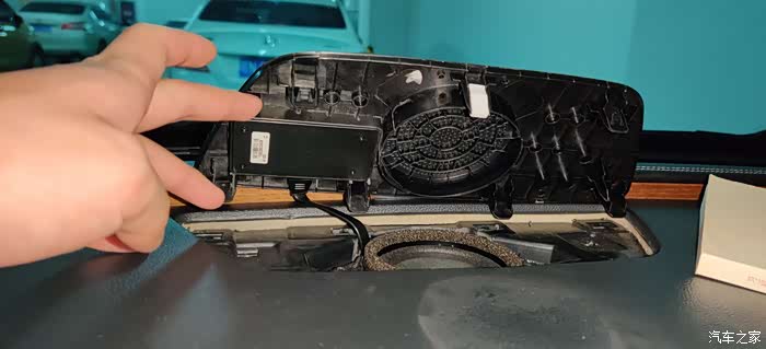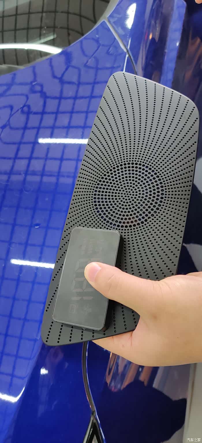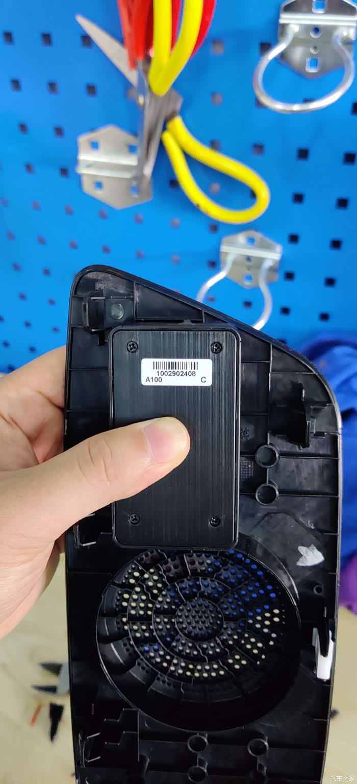 上周六跟老孟一起去了朋友音响改装店串门,跟老孟探讨了这个问题, 老孟不愧是老孟,点子就是多, 出了个“馊主意” 在中控的中置喇叭罩上掏个洞,把HUD嵌进去,尺寸正合适, 卧槽,这个好! 对于强迫症的我简直是完美方案 ,原厂效果!