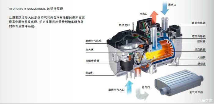 加热器是一个从原理上很容易解释的产品。利用汽车自身的燃油,埃贝赫的水暖或气暖加热系统,通过燃烧(类似单缸发动机)产生热量,预热发动机和驾驶舱,甚至货仓。