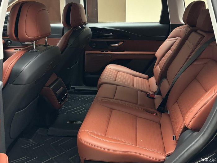 美式大沙发很宽敞,皮质柔软包裹感也更强。后排得房率比XT5高,坐进去在不调整前排座椅的情况下,翘个脚也还有一拳左右的空余,而且航海家后排的前后和靠背角度都可以调整,范围还挺大的,好像后排是22度~32度这么一个区间。这样就算是平时不爱坐车爸妈过来,坐后排应该也不会太难受。