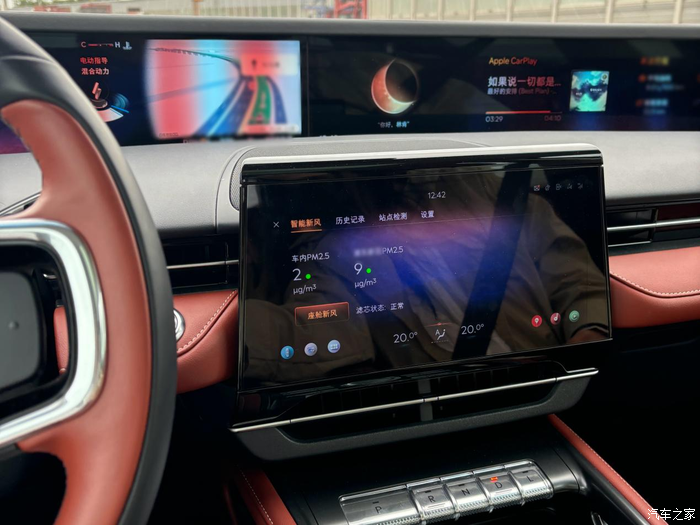 车内乘坐感受来说,进入车厢没有明显异味,销售还给我们体验了红杉林新风系统,在这种全是霾的天气里,能过滤pm0.3的新风系统确实很给车子加分。