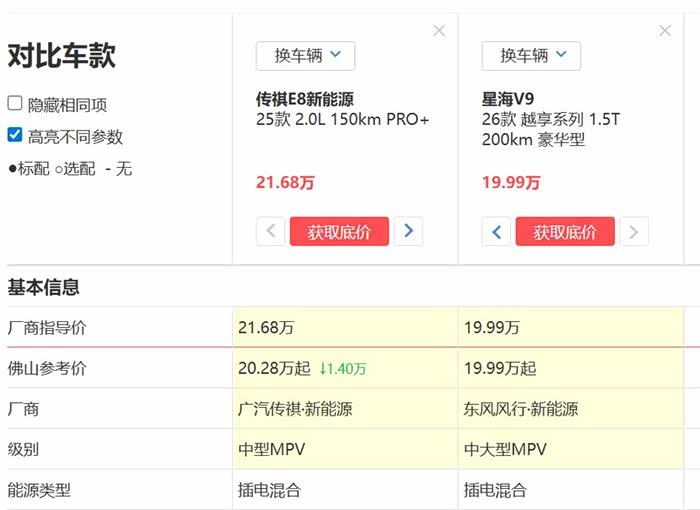 现在就是这两款车都能有购置税优惠了,在考虑的星海V9越享系列豪华型纯电200km,比E8续航长,大概就是平时多开一天的水平,相对省事点吧。其他尺寸、空间方面,这两款车我都还挺满意的,就差价格还没去细谈,E8新能源的25款指导价21.68万,我是希望能少个四五万;V9那边了解到的是用上置换和各种补贴,18万多点能搞定,如果都谈下来了,你们觉得哪台更好?