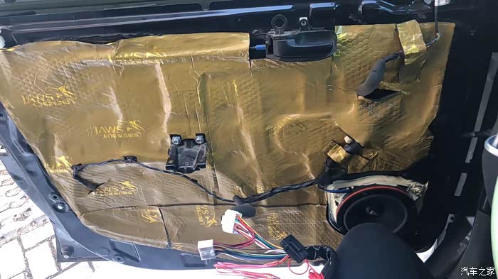 干过头了 既然忘拍作业了 大概就是这样 咱们隔音做好 这种材料不贵自己买来花点时间贴上就完成车门隔音了,主要我比较懒啥都只整了前面 完事后把喇叭替换加上分频器就好了(看你的需求有功放了不加也行)喇叭有正负极之分(可以把原车插头连线剪下来用5号电池测,具体百度我就不详讲了)我的中低用的是魔雷换好装回门饰板搞定