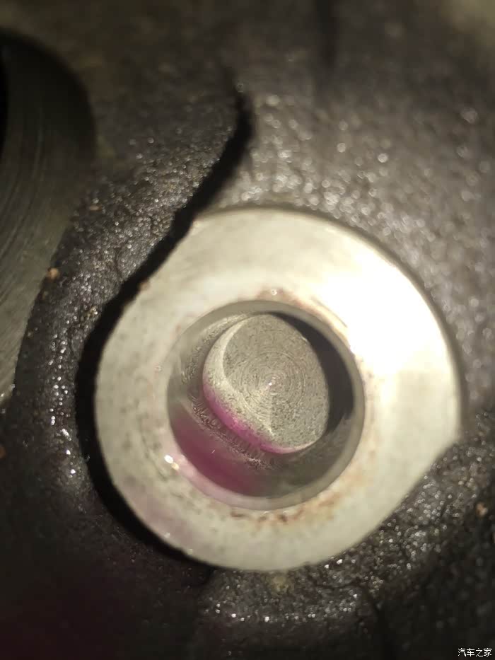 这个就是发动机装节温器的地方,那个残留一点防冻液的小洞就是小循环的水道,节温器打开后,会慢慢堵住这个小洞,让冷却液只走大循环。