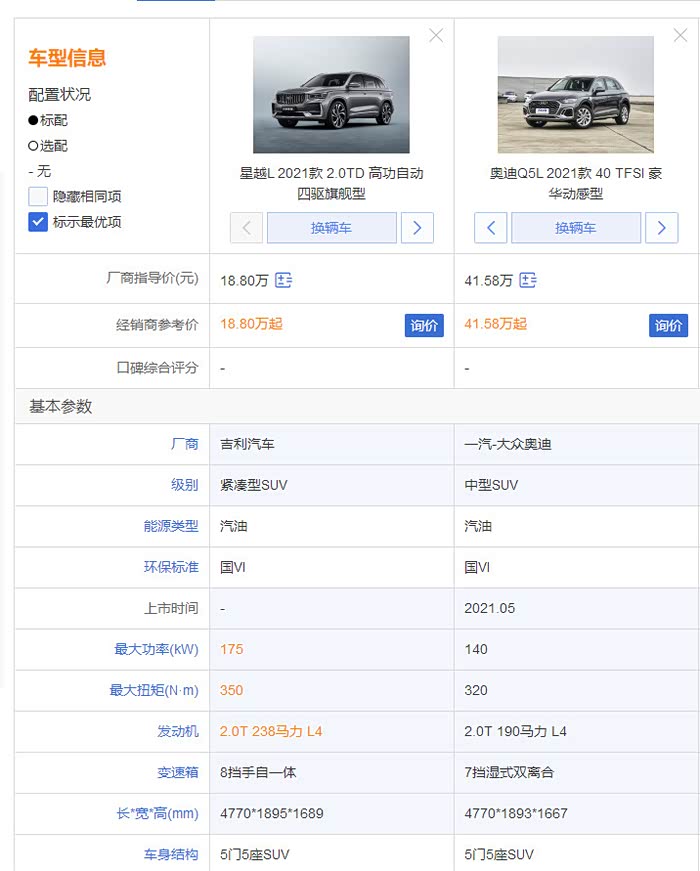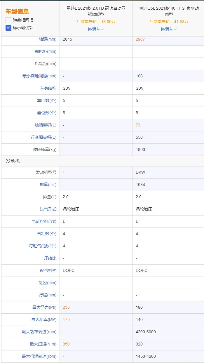 星越L和Q5L对比 比Q5有良心!