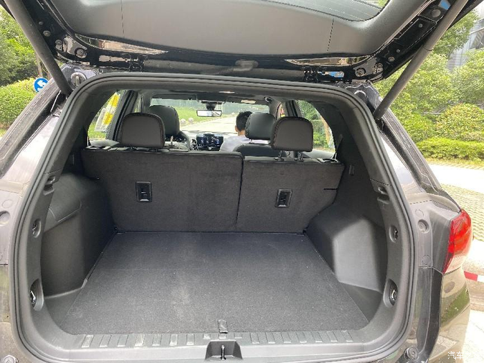 作为一台长4.6m、轴距2.7m的SUV,内部空间确实相当宽敞。不管前排还是后排,都有充足的乘坐空间。我主要体验的是后排,这么说吧,我和销售两个人都是175+的身高,腿部空间目测有三拳。头距离车顶也有足够距离,坐在里面很宽松,完全不压抑。