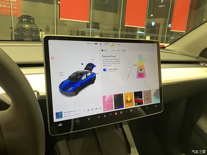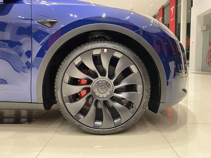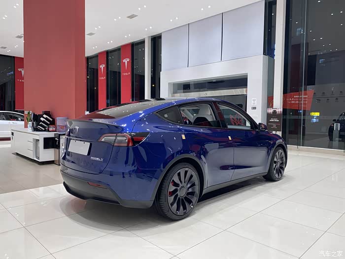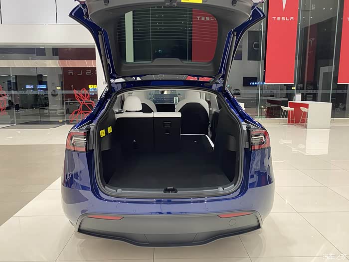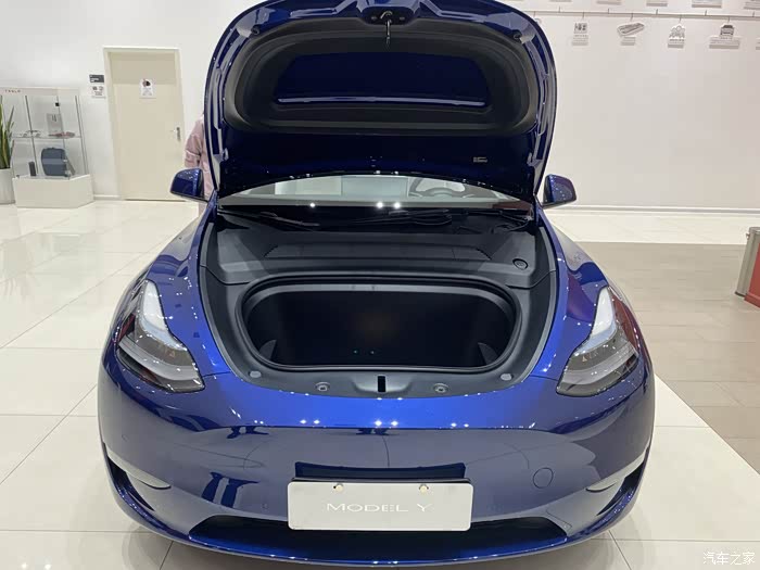 虽然已经晚上8点左右,店里面还有工作人员值班,我是从店的侧门进入的,进入之后这辆蓝色Model Y(应该是蓝色吧,标准名称叫不出来)就闪现在我眼前,在路上看到Model Y很多,但是从来没有认真看过,有的人说丑,有的人说好看,看个人吧,对于我来讲整体90分比较满意。