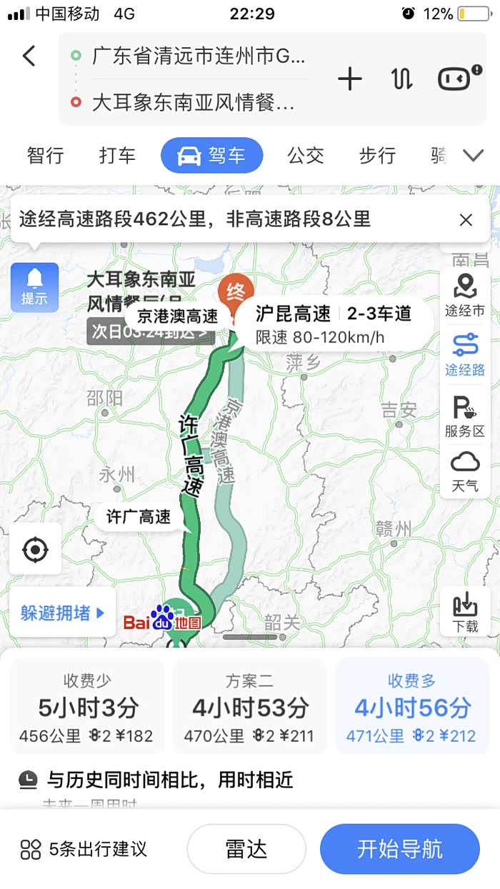 咨询广东珠海开车回湖南长沙的路线