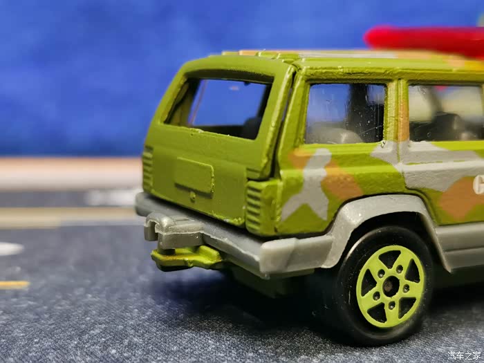 模型为合金车身,尾门开合,车轮减震,做工一般。
