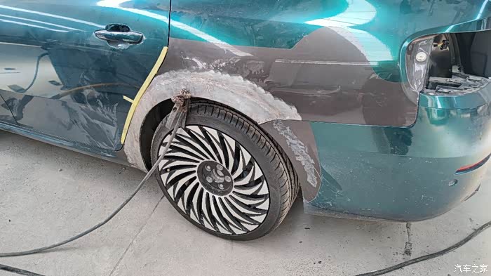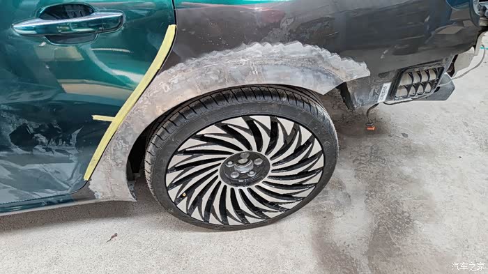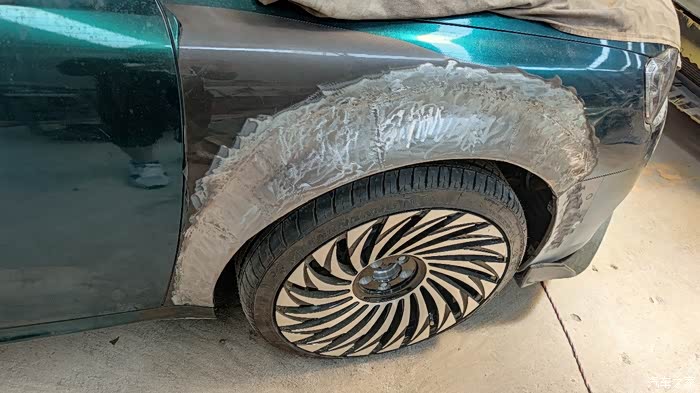,研究半天才发现,订轮毂的时候参数没给对,J值给厂家说大了,原车轮毂8J,结果订了个9J,再加上轮胎也比原车245宽了1cm,因此悲剧了。经过多翻讨论,轮毂由于是定制是不可能退了,关键是价格不菲,不想浪费,被迫改个宽体,说干就干了: