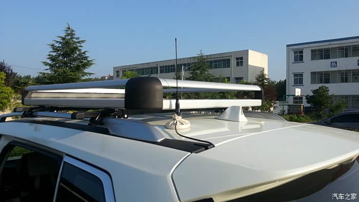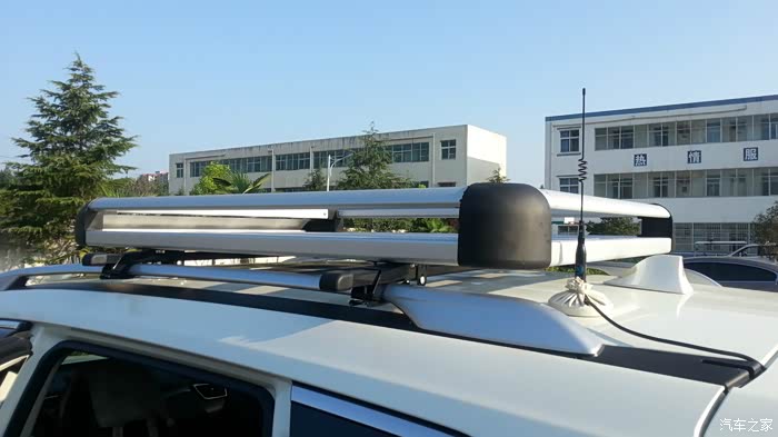 车顶行李框近景,后面的是车载电台的天线,,这个天线真心的不便宜啊!